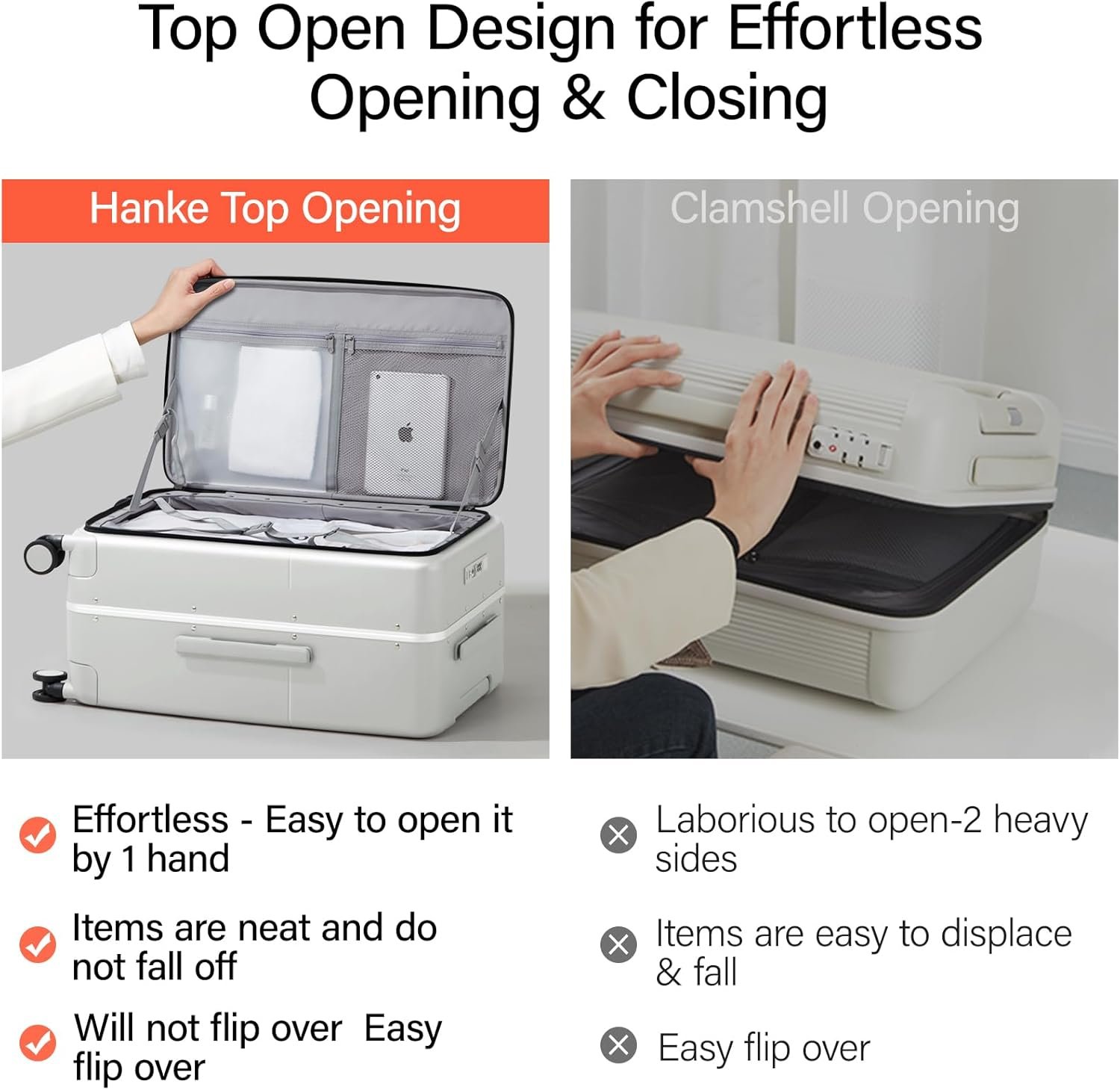 - 【Save Space & Effort】The top opening is a real space-saver in a tight space, compared to a luggage that zips open in the middle and has to spread out.And the top open luggage can be opened easily with one hand, is user friendly for elder, children and someone with less effort.strength.