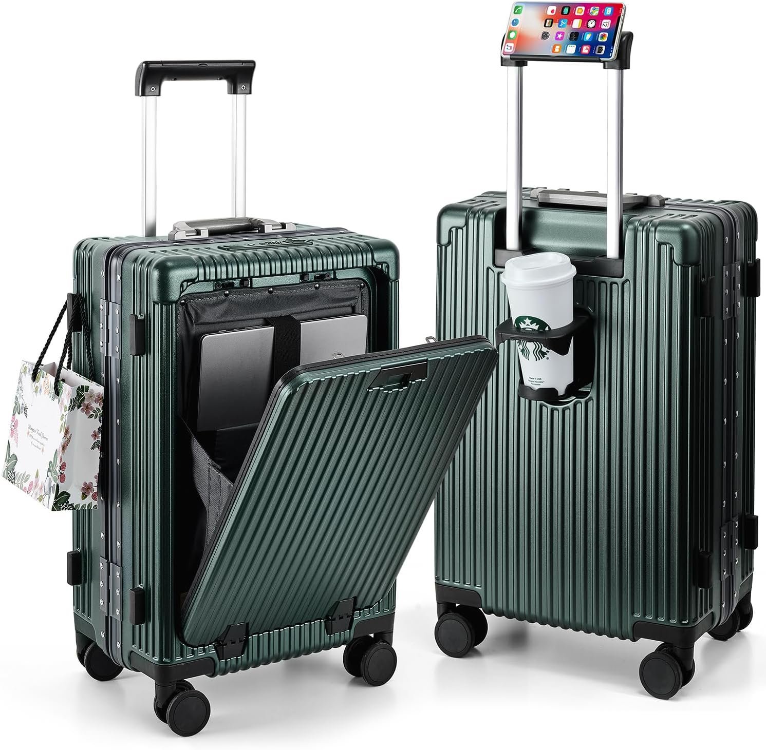 - 【Multifunctional Holder Design】The foldable cup holder on the back of the suitcase can hold drinks,bottles or umbrellas.The handle designed with a phone holder to free your hand while watching vedioes;The side of the suitcase equipped with hooks to hang the bags,making travel more convenient.