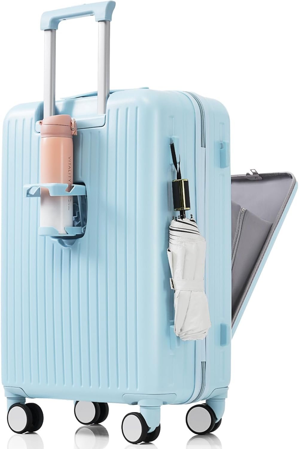 - [Front Open Lid Design] : Our 20 , 24 inch suitcases are unique in the front open lid design. When you need to, you can quickly and easily open the front cover of the suitcase and directly access or place items without having to fully open the entire suitcase.