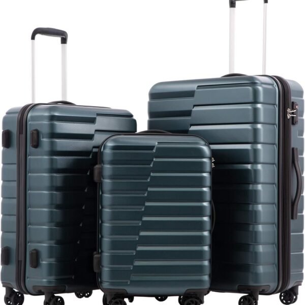 Expandable Suitcase PC ABS Luggage 3 Piece Set Lock Spinner Carry on (Teal blue)