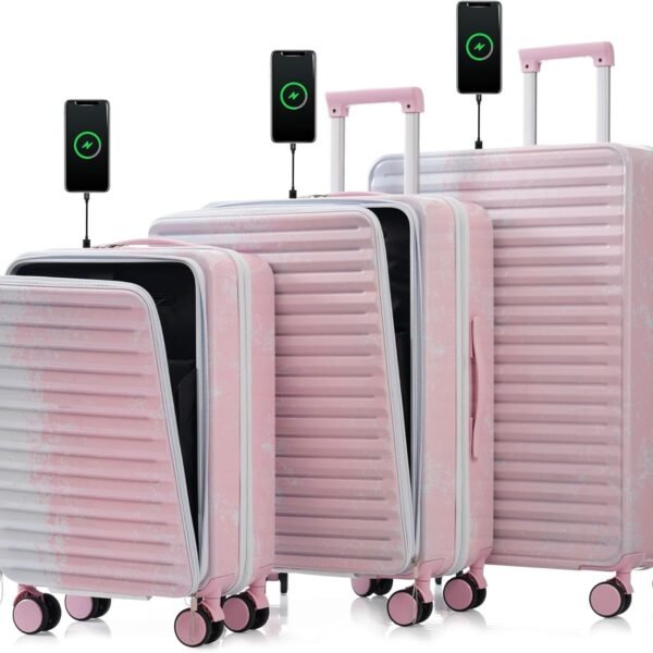 Luggage Sets Hardshell Suitcase with Cup Holder, Rosy Brown, 20/24/28 Inch